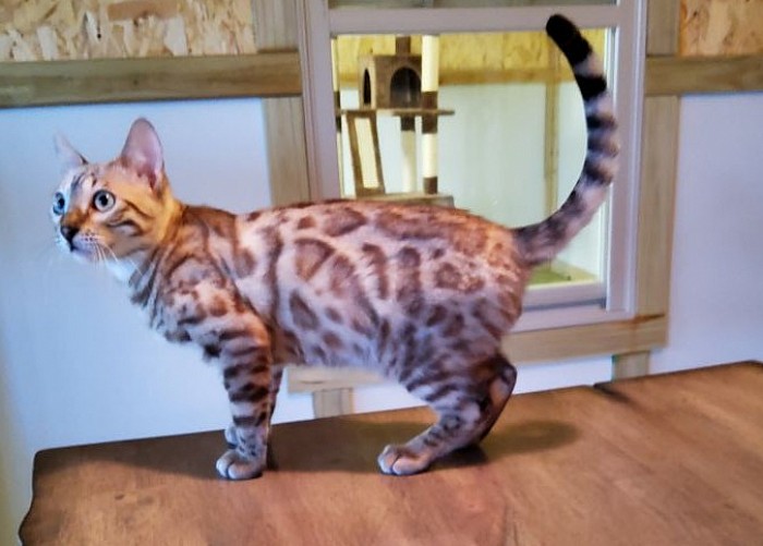 All of our Bengals have beautiful glitter coats! are where the Bengals have translucent hair shafts which gives them a shiny metallic glittery look when looked at in the direct sunlight. It is very hard to get a picture of the" glitteriness"but it is simply breathtaking and soft.